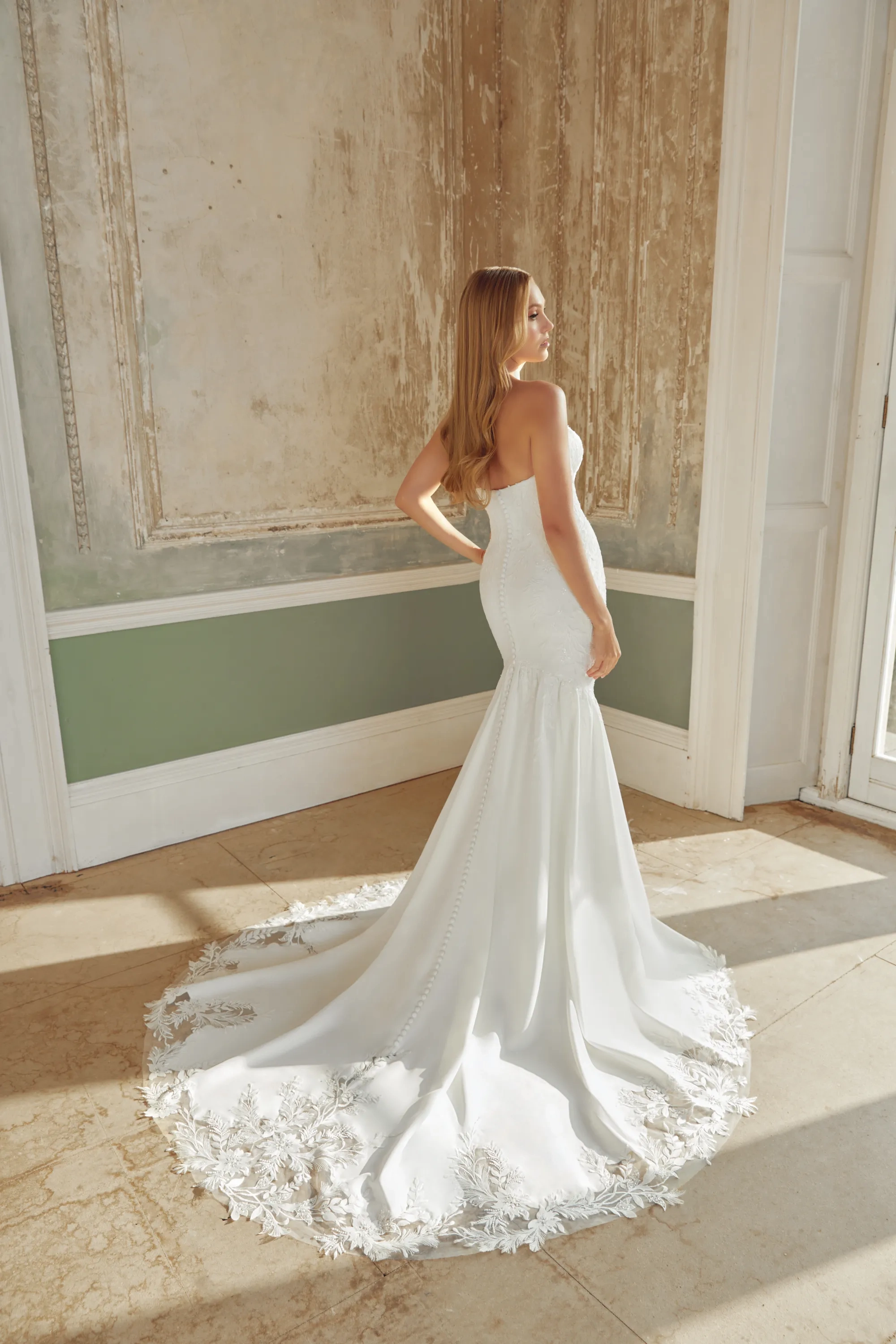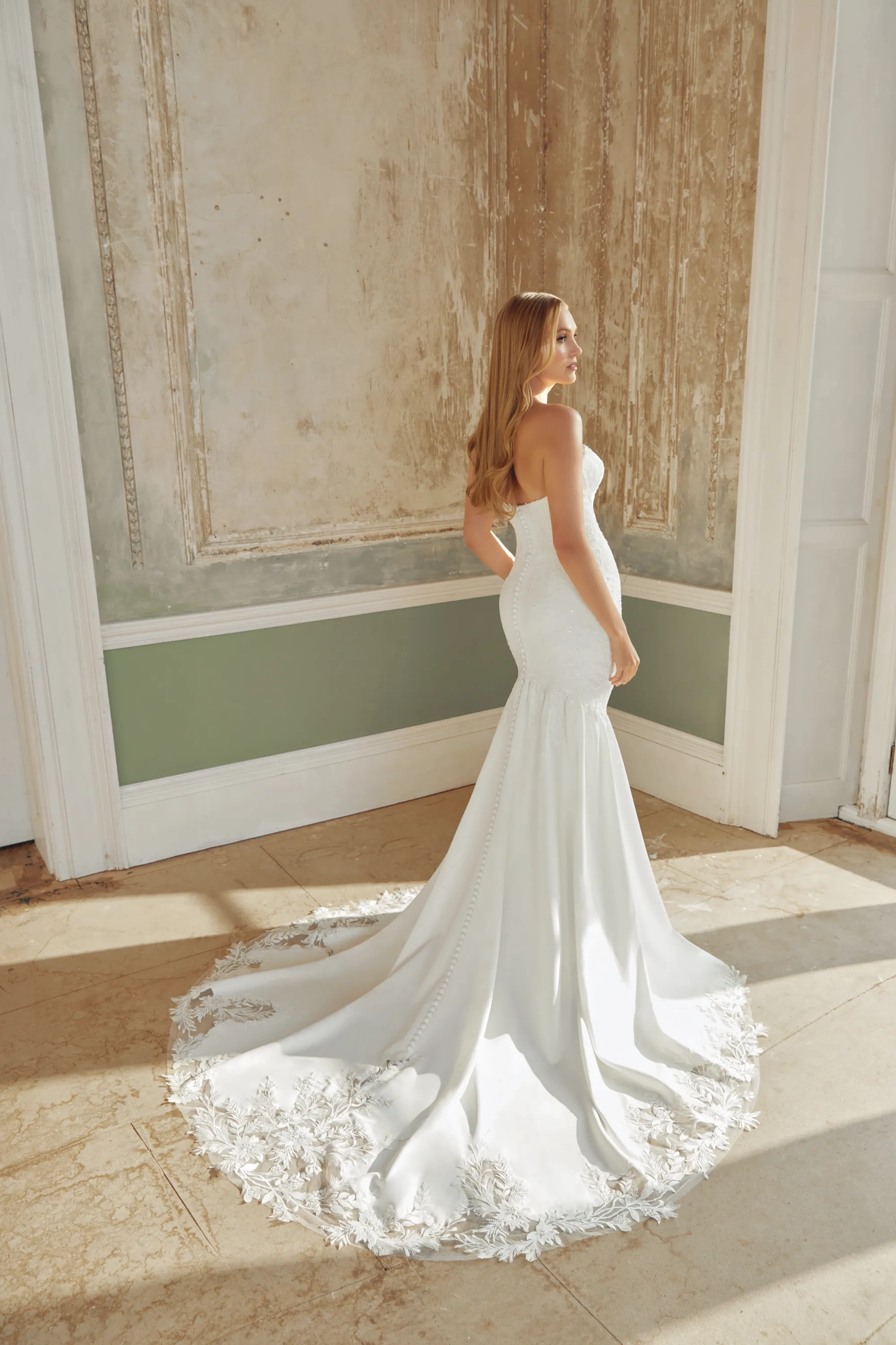 Fabric:Beaded and Sequined Lace Appliques, Jersey Lining, Stretch Crepe, Tulle