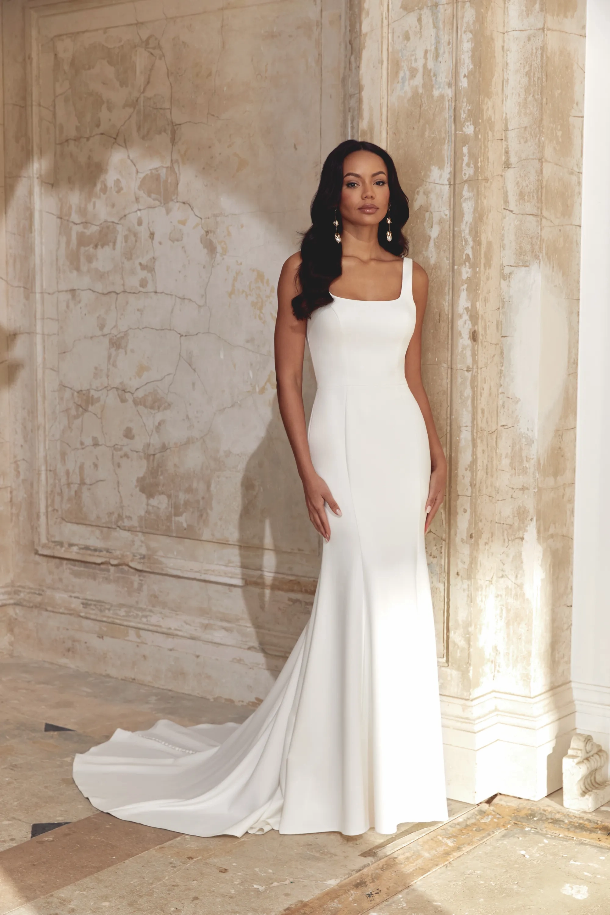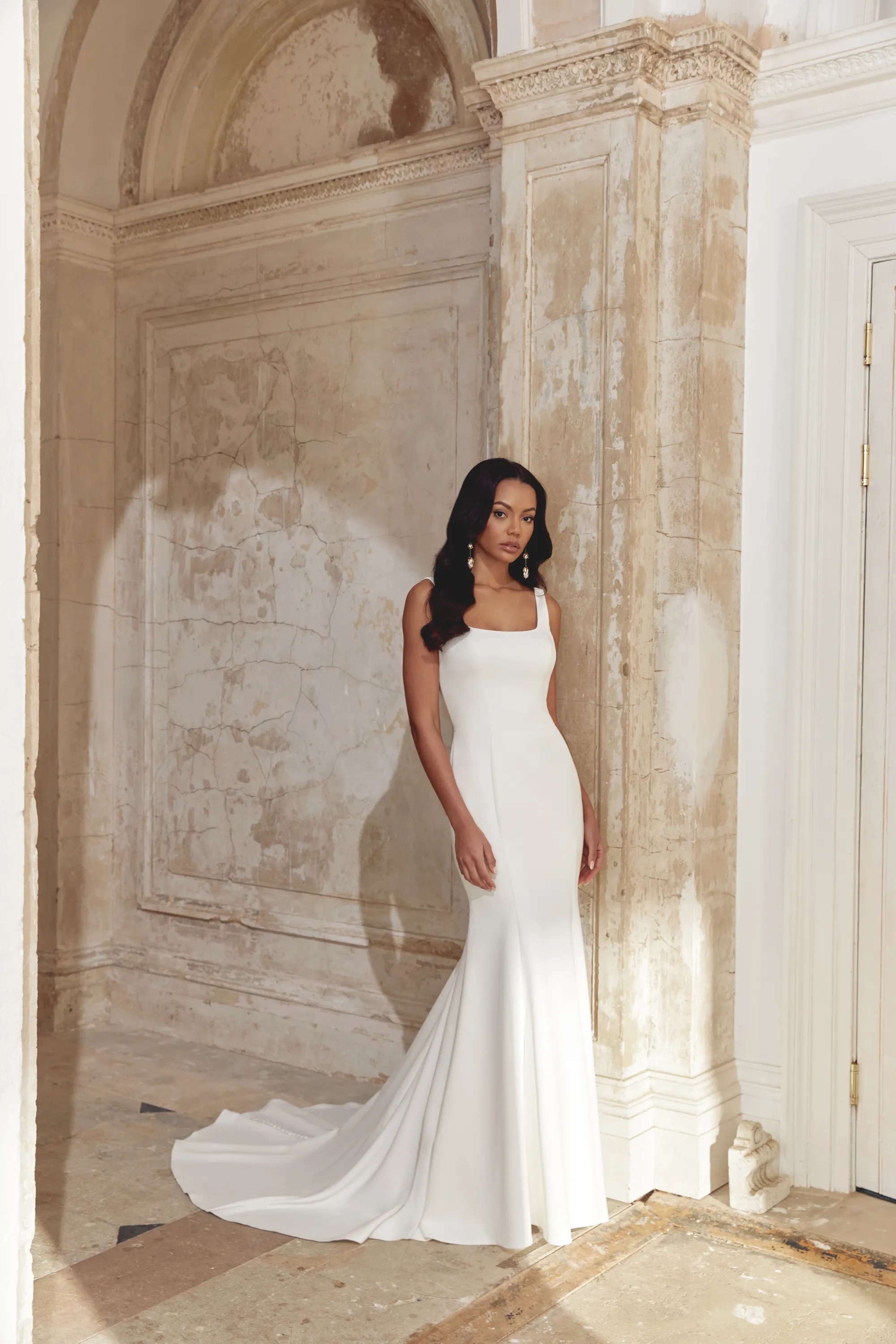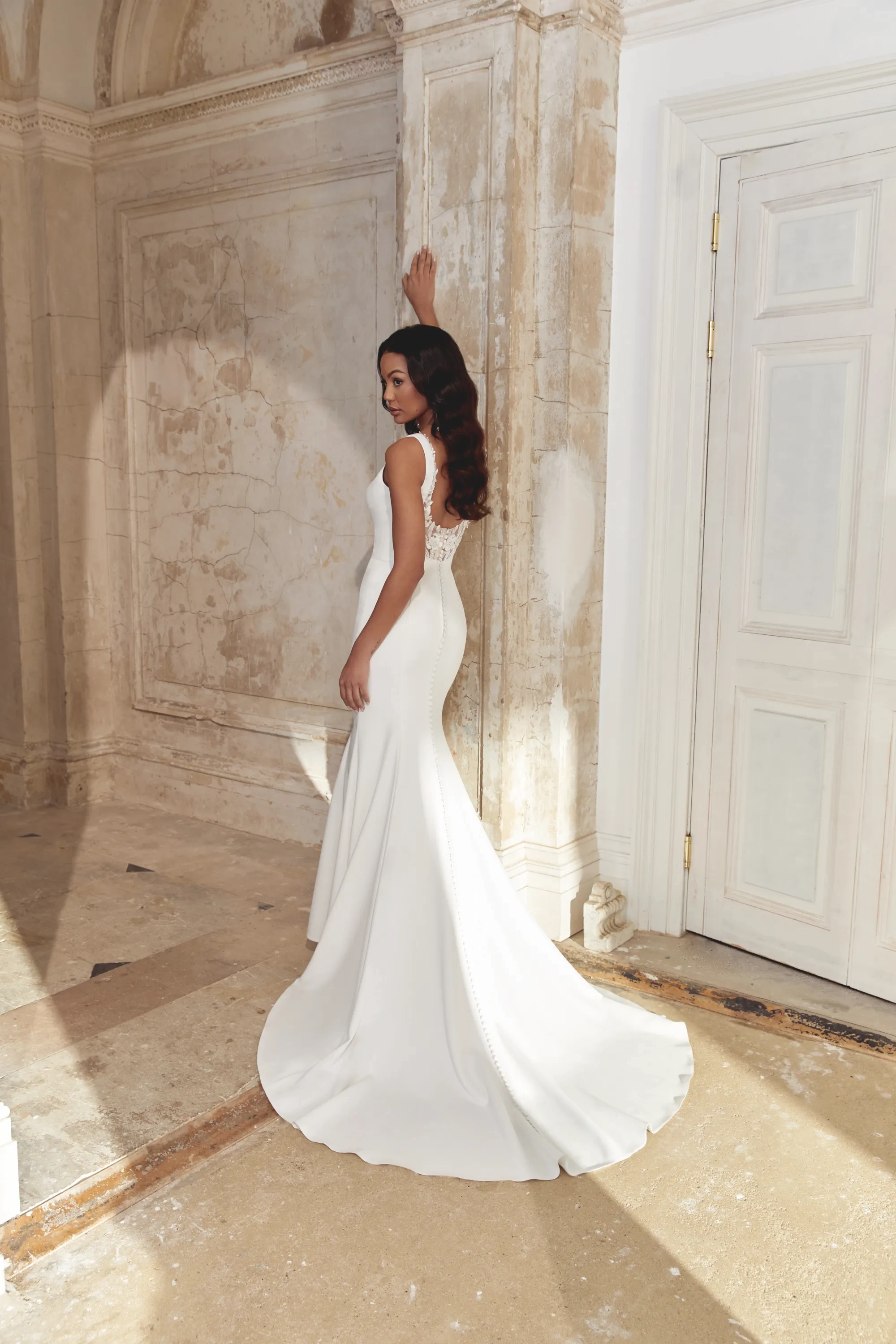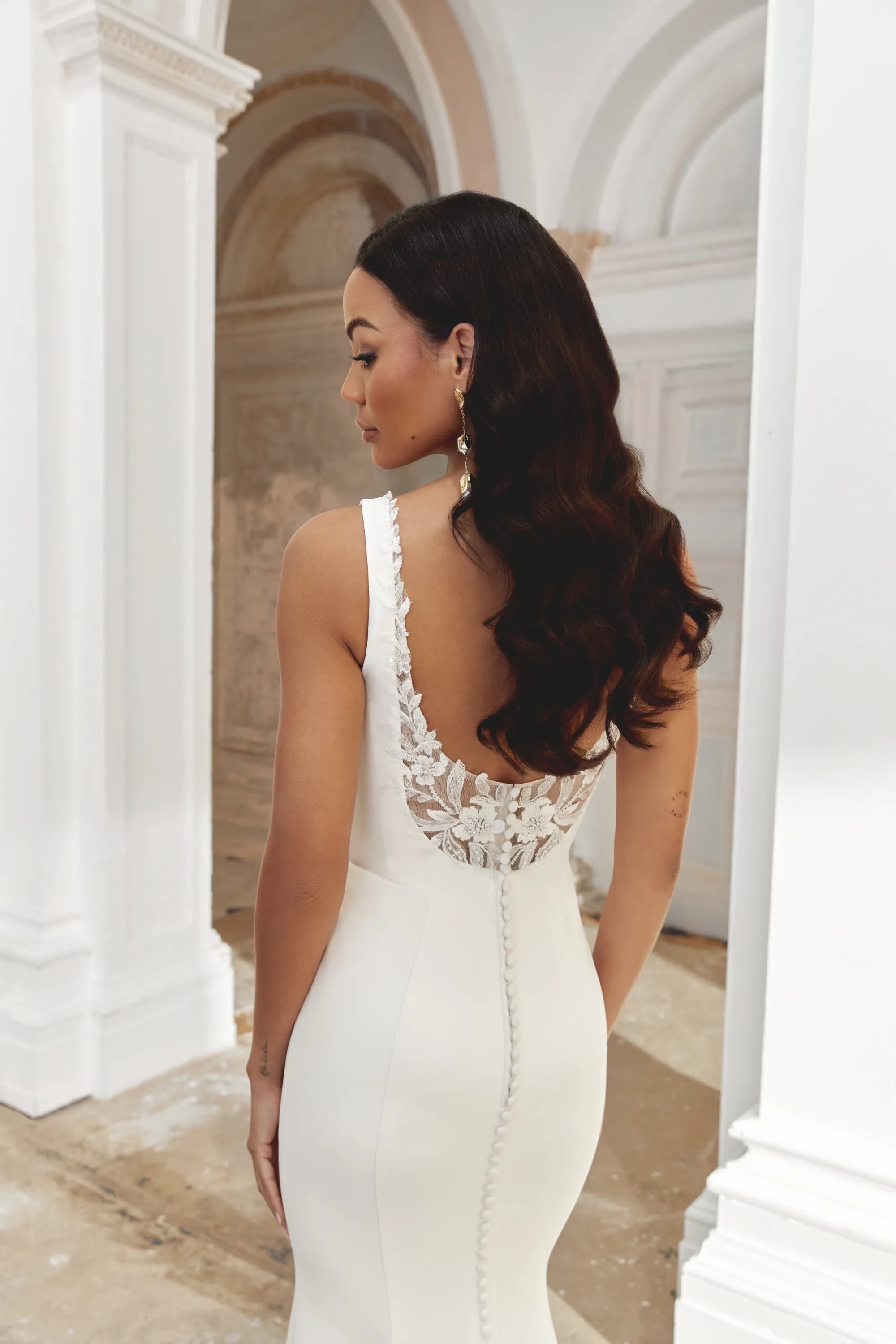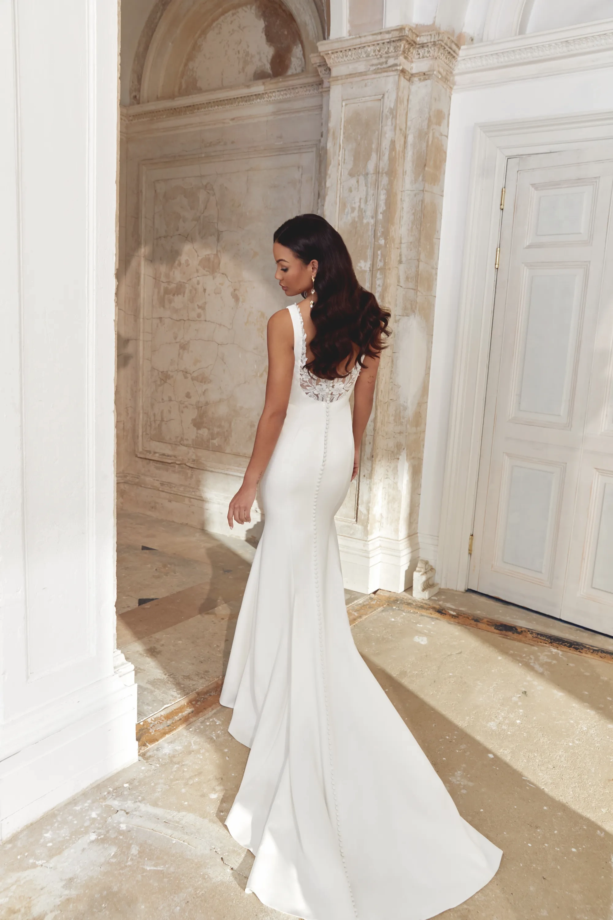 Fabric:Beaded and Sequined Lace Appliques, Jersey Lining, Stretch Crepe, Tulle